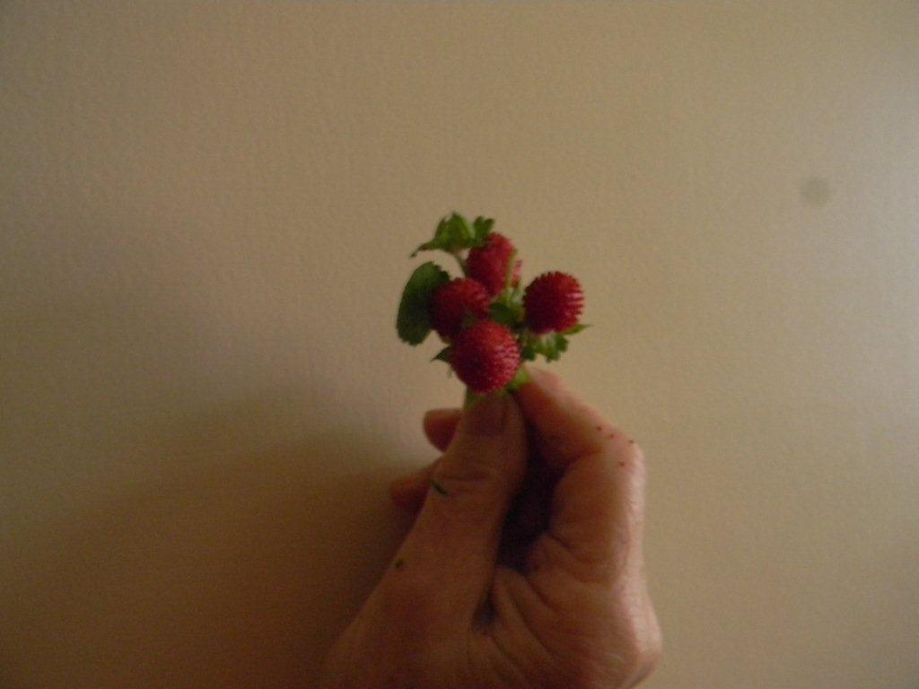 This morning I spent some time in our backyard. Amongst all the recent lush growth I found some delicious very small wild strawberries. I consumed quite a few of these and so did Peter. I also asked Peter to take a picture of some. He did, and now I can include them in this blog together with the pictures from Thirroul.