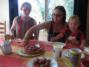 We had some lovely visitors this afteroon. Monika and Krystal came to see us with little Lucas. They also did bring an excellent cheese-cake along that they had baked themselves this morning. We had lots of fun with Lucas roaming around our place.