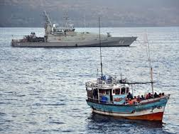 Within an hour, an Australian warship and other vessels arrived. Military personnel forced the asylum seekers back onto their wooden boat and towed it out to sea. Their destination: Indonesia.