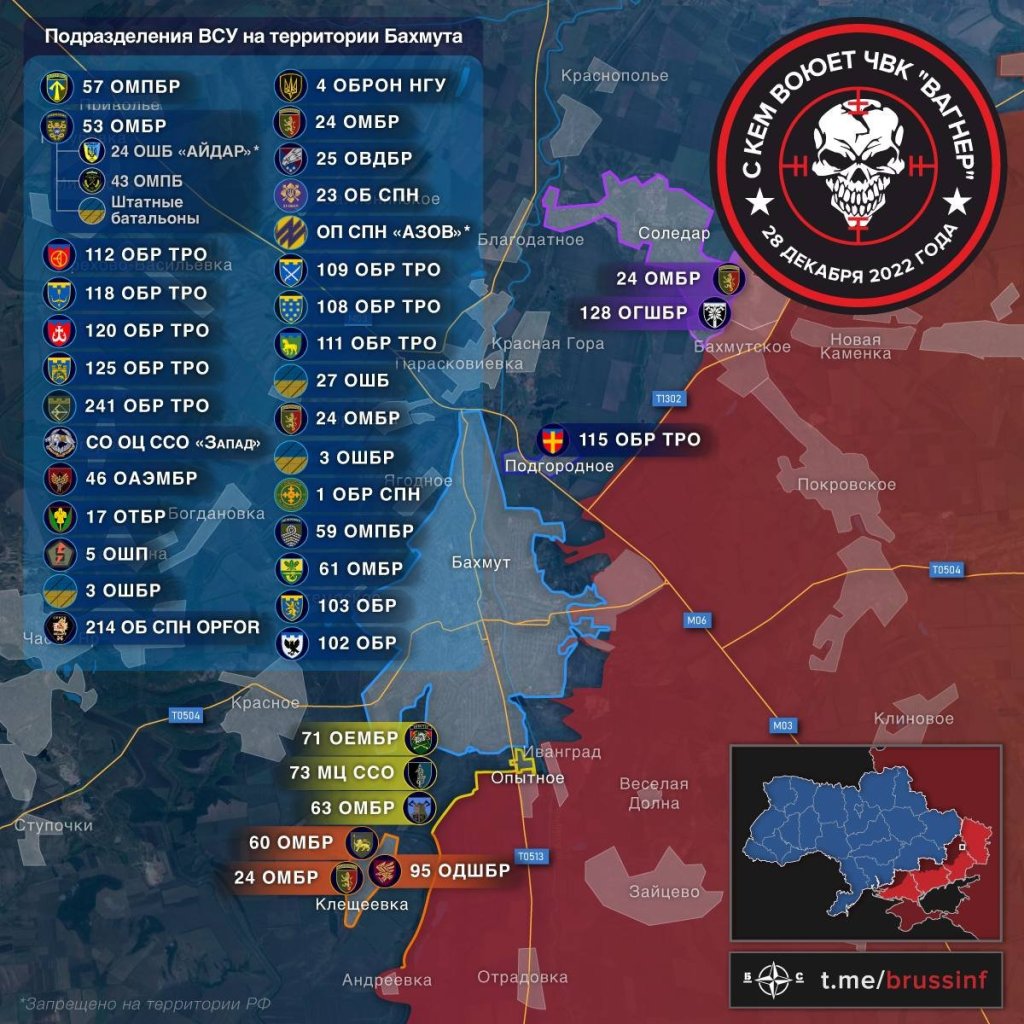 According to Wagner PMC, no less than 27 Ukrainian brigades are involved at several echelons in the defense of Bakhmut, are regularly rotating on first line and replenished with fresh cannon fodder after huge casualties