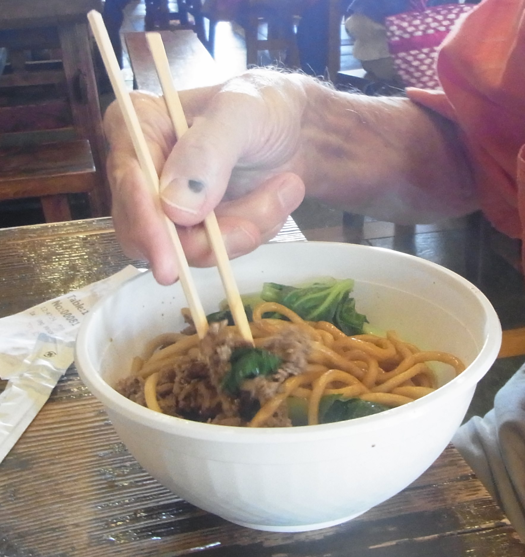 Peter chose a noodle dish.Lauren had a Laksa dish.